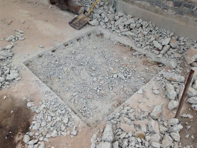 กำหนดตั้งเสา บีมไว้ 8 ต้น ....พื้นเดิมเป็นลานปูนอยู่แล้ว จึงต้องใช้เครื่องผ่าเปิดคอนกรีต ขนาด 1.2X1.2 ม.