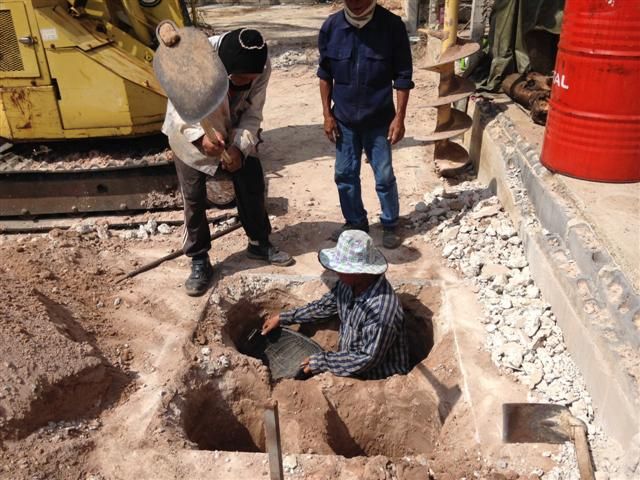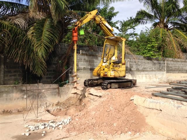 เปลี่ยนเอารถเจาะหลุมเสามาลองดู ได้ผลดีเจาะ 4 มุม ล้วงดินขึ้นมา อย่างสวย