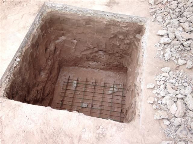 ระบบฐานรากเลือกใช้เป็นฐานแผ่ 1.20x1.20 ม.ลึก1.3ม. ใช้รถขุดตัวเล็กขุดลงไปปรากฎว่าดินแข็งมากเกิน เพราะอยู่ใกล้ภูเขา เกาอยู่ 2ชั่วโมง ข้างๆ หลุมผังเป็นรอยฟับบุ๊งกี๋ ดูไม่สวยและใช้เวลานานมากเกิน