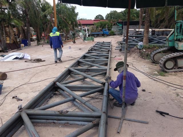 ตั้งเสายากเหมือนกันนะ 8ต้น ใช้เวลาไป 3วัน ช้าเพราะต้องเล็งซ้าย/ขวา หาฉาก และค้ำยันไปพร้อมๆกันด้วย