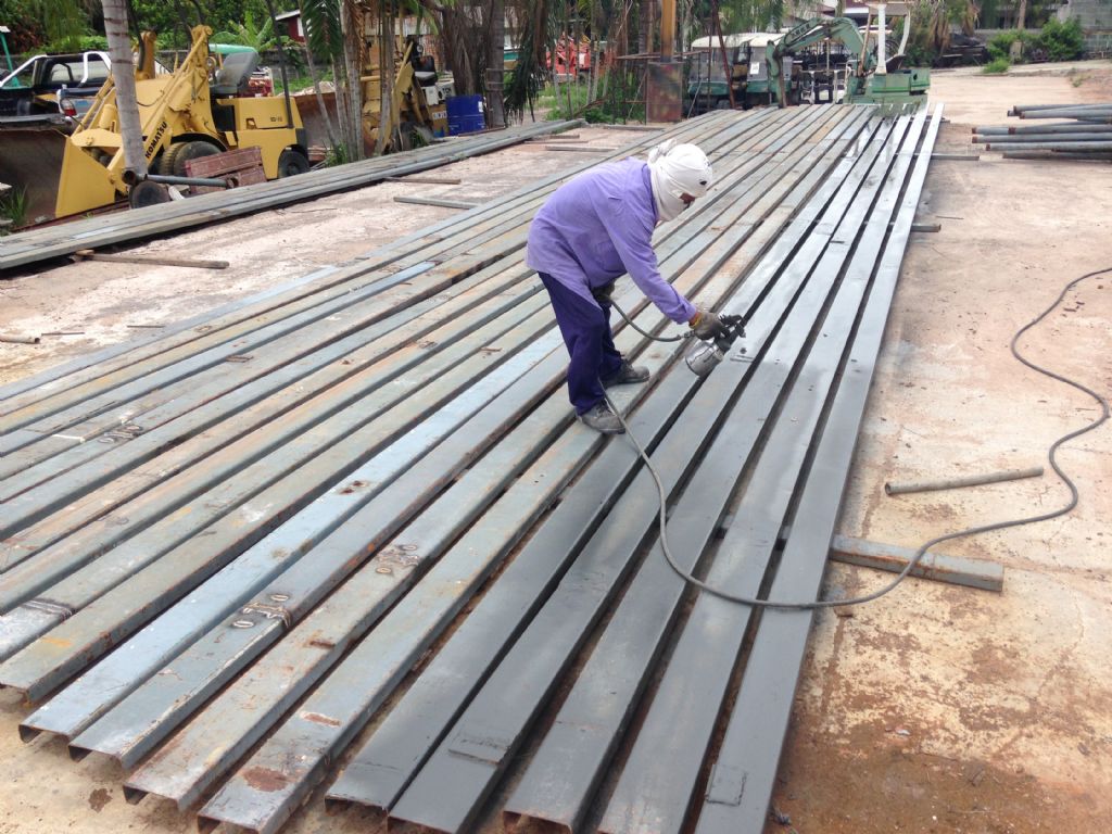 เสา H บีม 7'' พ่นสีพร้อมเชื่อมเพลทปิดยอดเสา เรียบร้อย พร้อมติดตั้ง