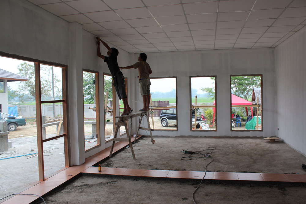 ปูกระเบื้องในบ้านเสร็จแล้วครับ