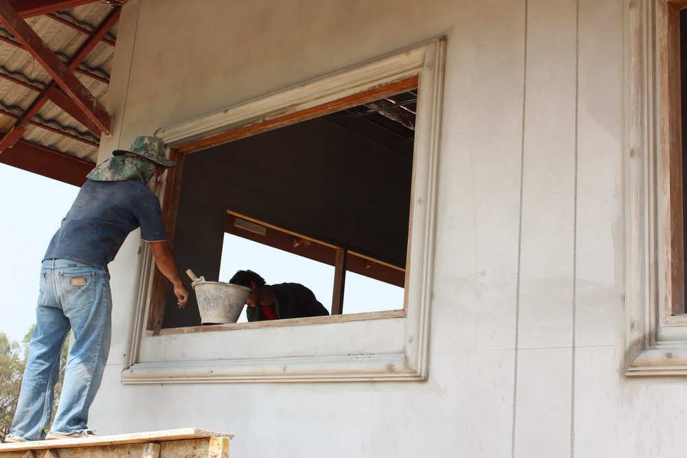 รอแต่งเสาตอหม้อด้วยหินทราย