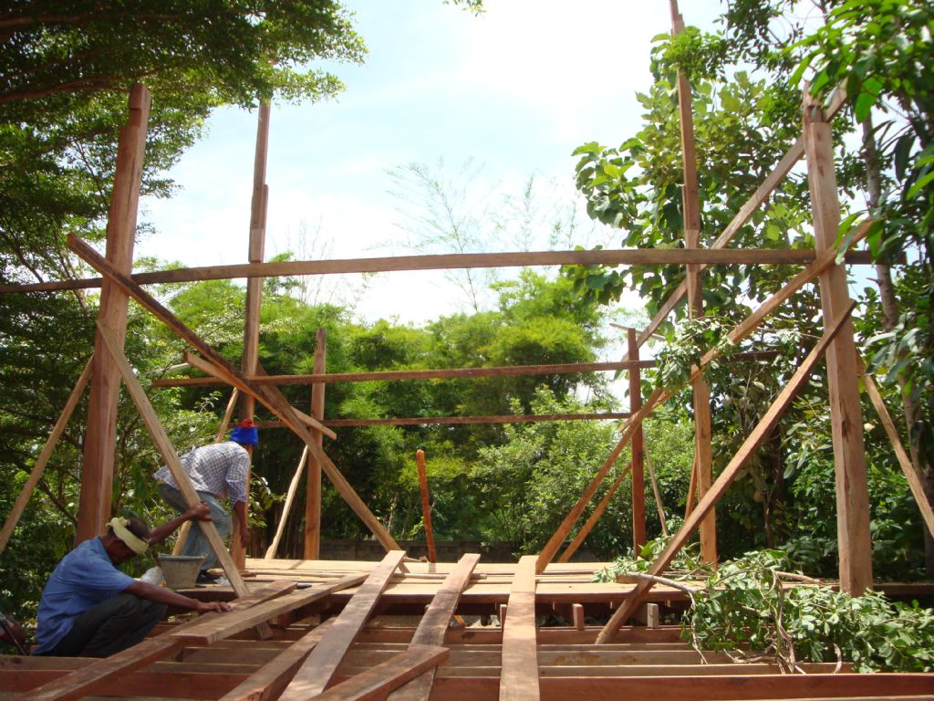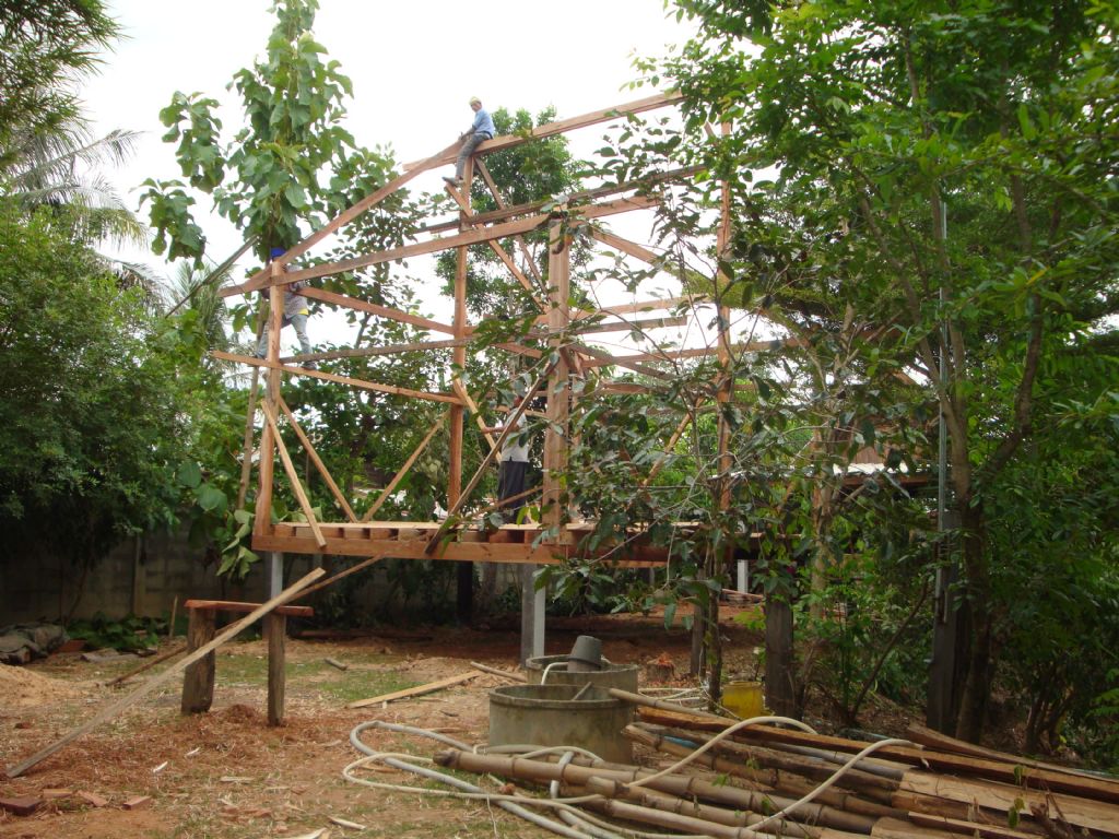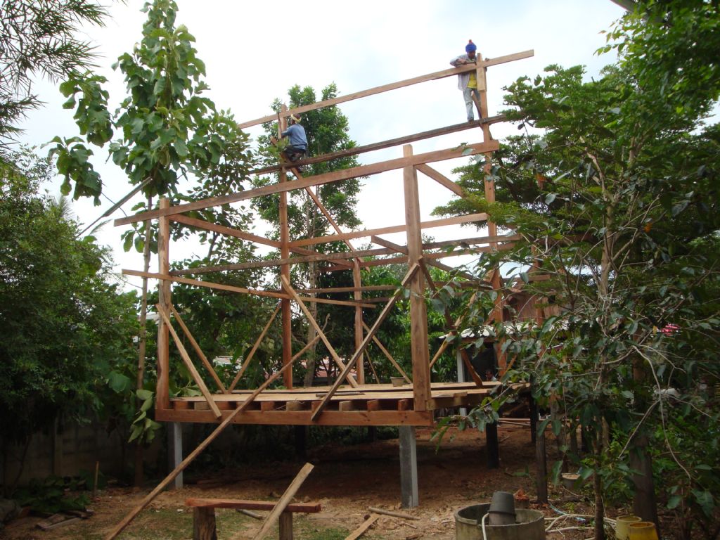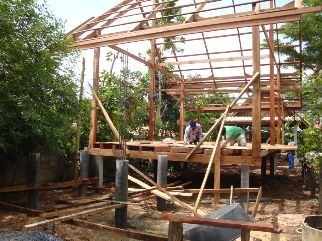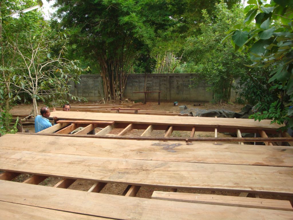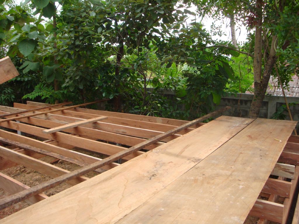 เอาแผ่นกระดานพื้นขึ้นวางทับตง ครับ