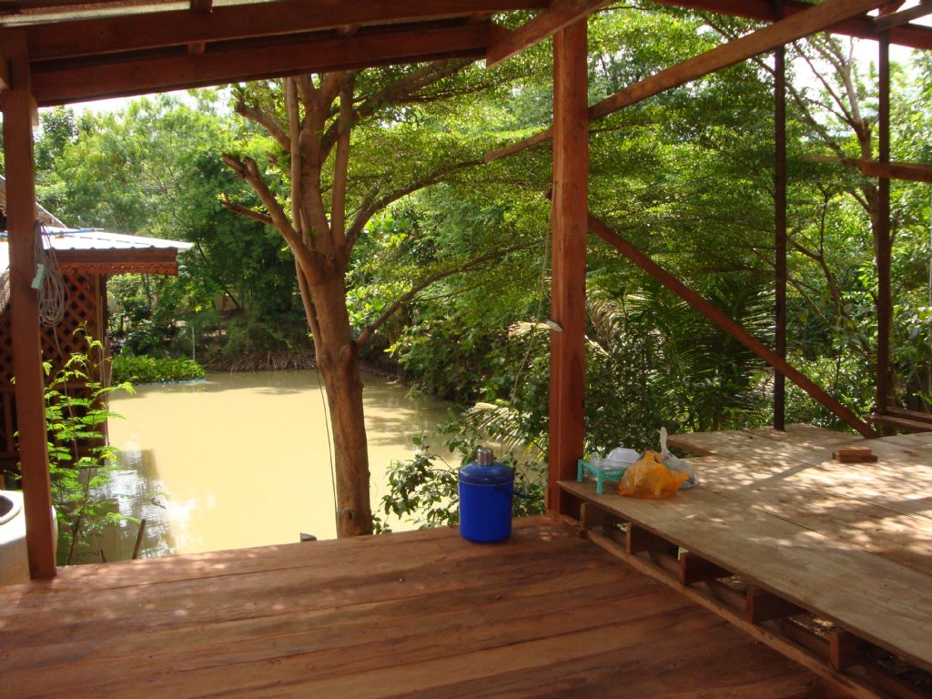 บ้านไม้ที่สร้างบนสระน้ำ