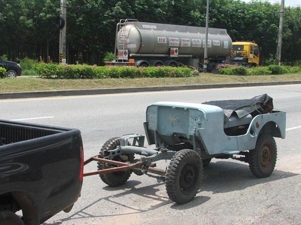 สวัสดีครับ ผมลากมา 2 คัน แล้วครับ ลากแข็ง ลากจากศรีสะเกษ - สงขลา และอีกดัน แปดริ้ว - สงขลา เป็น cj3b-j4c 1คัน cj3b อีก1คัน ครับ ใช้ ln 111 ลากใช้น้ำมันเพิ่มขึ้นนิดหน่อยครับ ลากเที่ยวละคันนะครับ ลากแข็งใช้โครงลากสามเหลี่ยมติดหน้าจีป แบบของคุณบิ๊กสุราษ นะครับ ลากด้วยขอลากปากนกแก้วครับ ไม่มีใครถามอะไรเลยมีแต่มองด้วยความงง ว่าลากได้อย่างไรใครเลี้ยวคันหลัง แค่นั้นเองครับ