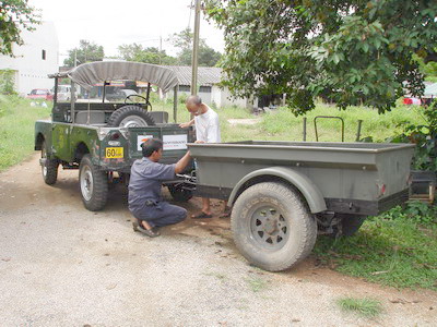 หวัดดีครับ พอดีผมไปเจอ หางพ่วงตัวนี้มา เข้าของรื้อพื้นออก เอาพื้นไม้ใส่เพื่อจะนำไปบรรทุกปาล์ม ผมเลยขอซื้อมา ทุกอย่างยังอยู่ครบหมด ขาดโซ่ สายพ่วงไฟ และไฟท้าย หัวข้อต่อไฟ และสายไฟยังอยู่ ครบ เจ้าของเดิมใส่กระทะซูซูกิอยู่ แต่กระทะเดิมก็ยังอยู่ อยู่หน้าจอเนตอยู่สองวัน หารายละเอียดเกี่ยวกับพ่วงตัวนี้ ก็ได้ความรู้มาเยอะเหมือนก้น แต่ที่ยังไม่ทราบก็คือไฟท้าย ไม่ทราบว่าจะเหมือน early jeep ford หรือเหมือน M38 jeep เพื่อนฝูงที่เคยเห็น หรือมีความรู้ช่วยให้ความกระจ่างด้วยครับ เชิญดูรูปได้เลยครับ สองรูปแรกมาจากเนตครับ