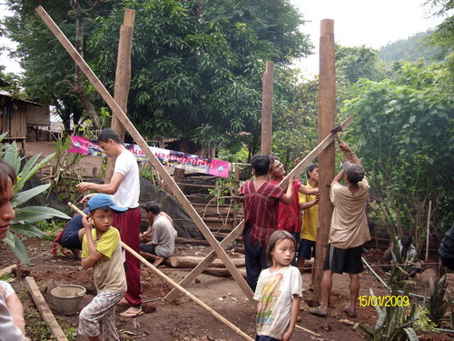 ออกปฏิบัติหน้าที่ หมู่บ้านมวลชนสัมพันธ์ สร้างบ้านพักครู 1 หลัง
