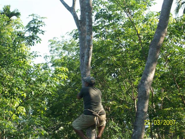 เนื่องจากโคนมันผุจากเชื้อราดึงนิดเดียวก็ล้มแล้ว โชคดีที่ไม่ล้มตอนที่ปีนไปผูกเชือก