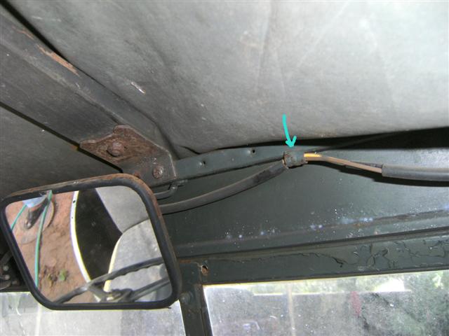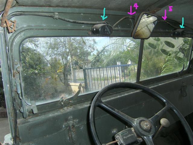 ...เดิมไปที่ขอบกระจกด้านซ้าย (สายไฟสีเขียว) และมีเหล็กรัดสายไฟ จุดที่1 (เหล็กรัดสีชมพู)