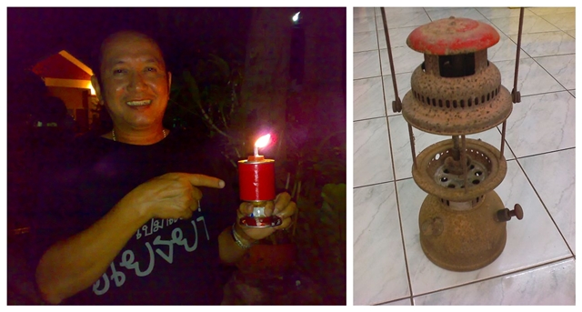 ตะเกียงที่นำมาเป็นของที่ระลึก ครั้งก่อนยังไม่ได้จุดไฟเลย ดอน มาทำให้ติดด้วย