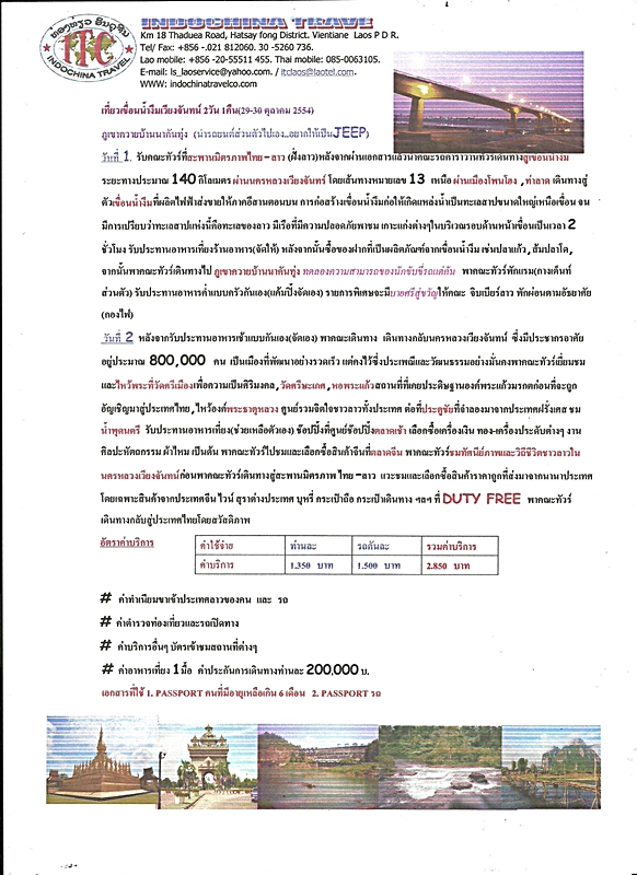 เอ้า....เตรียมตัวได้แล้วครับพี่น้องที่ไม่ค่อยมีเวลามากนัก ไปเยี่ยมเยือนพี่น้องฝั่งโน้นกัน 29-30 ตุลาคม 54 สองวัน 1 คืน เตรียมเอกสารรถให้พร้อม สำหรับผู้ไม่มีพาสปอร์ตงานนี้ทำบัตรผ่านแดนชั่วคราวไปก้อได้ครับ.