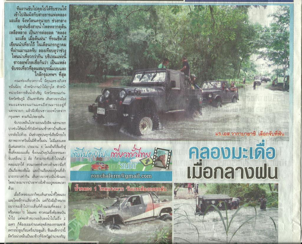 กระทิงดงน้ำโสม ขอไปด้วย 2 คันครับ รถ ซูกิครับ ไม่กล้าเอาจี๊ปไป กลัวเป็นภาระกับท่านอื่นครับ ว่าจะออกบ่ายวันศุกร์ครับ ไม่ทราบจะติดต่อท่านไดได้บ้างครับ กลัวไปไม่เห็นกันครับ จะไปทางนาด้วง ทะลุวังสพุง เข้าทางทับเบิก ต่อจากนั้น ไปไม่ถูกครับ ผมปรีชา 0818727811 หรือ นายกแอ็ด 0879449330 ครับ