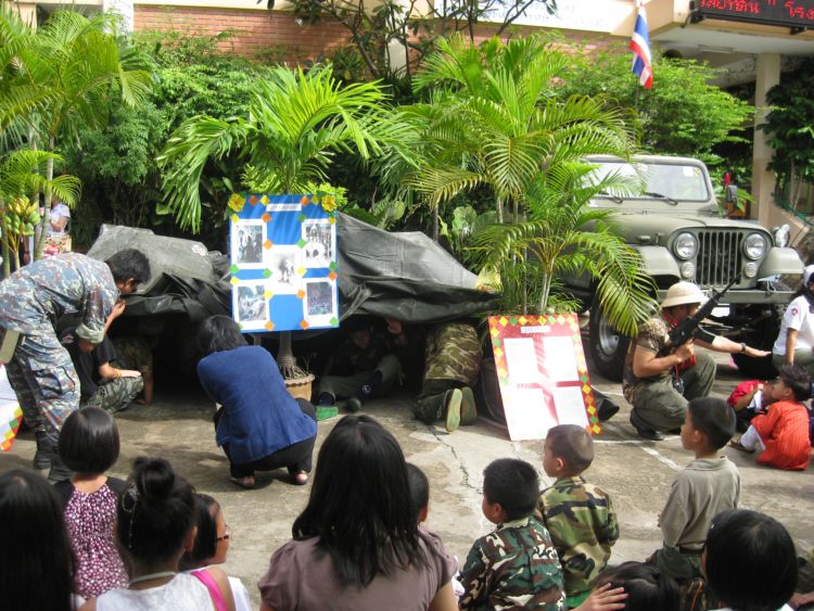 ด้วยทางโรงเรียนฯ ได้จัดกิจกรรมเกี่ยวกับ โลกศึกษา เนื้อหาใจความคือ จำลองเหตุการณ์ชายแดน ไทย กับ กัมพูชา เพื่อให้เด็กได้ศึกษาโดยแบ่งออกเป็นฐานๆ เช่น ฐานหลุมหลบภัย ฐานปืน และหลังจากเสร็จสิ้นกิจกรรม เราได้รับคำชมเชยจาก ท่านผู้อำนวยการอย่างมาก และทางโรงเรียนได้นำกิจกรรมนี้ไปโชว์ให้กับทางโรงเรียนอื่นๆ ได้ชม และได้รับความชมเชยอย่างมาก ผมจึงนำได้นำเรื่องราวมาบอกต่อว่า รถจี๊ปของพวกเราเค้าสามารถสร้างคุณประโยชน์ได้อีกมากมายครับ