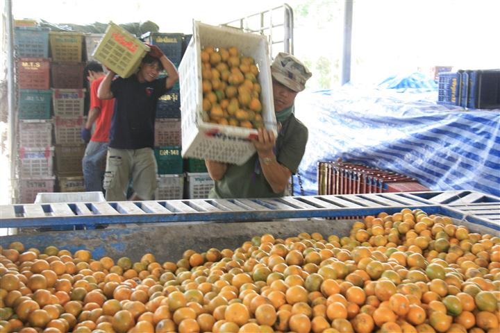เอาส้ม มาขึ้นรถและลำเลียงไปส่งที่หมาย