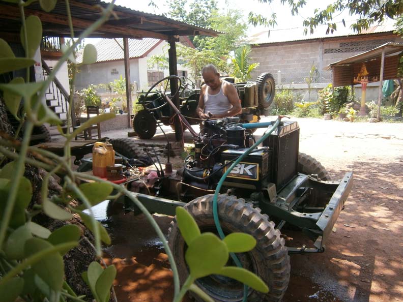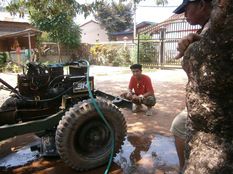 จากนั้นก็ยกใส่ เข็นออกไปข้างนอกเพื่อไร่น้ำตามกฎของ LAO Jeep
