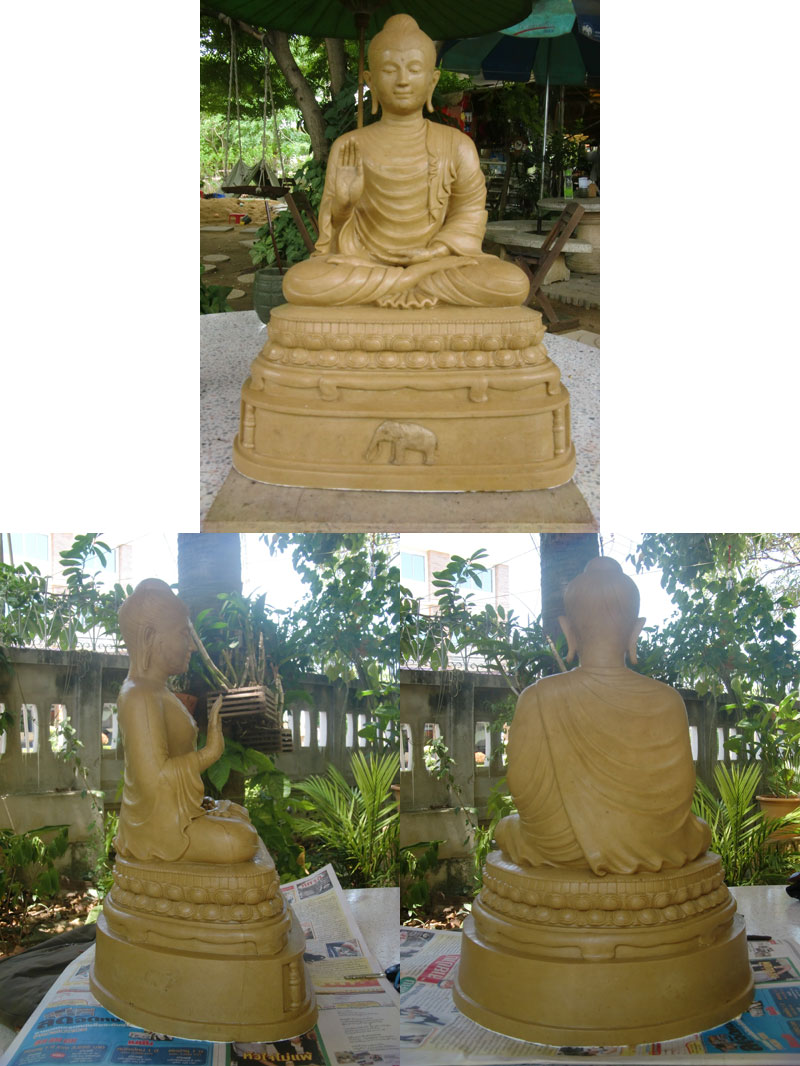 ตามที่มีพี่ๆโทรมาสอบถาม พระองค์นี้ยังไม่เสร็จสมบูรณ์ ตอนนี้อาจารย์ผู้ปั้น(ชาวจี๊ปเหมือนกัน)กำลังนำกลับไปเพิ่มธรรมจักรไว้ด้านหลัง ส่วนเรื่องวัดที่ตั้งใจนำไปถวายคือวัดที่ผมเคยบวช วัดอัมพวัน จังหวัดสิงห์บุรีครับ และสำหรับจุดประสงค์หลักในการสร้างคงไม่ได้อธิบายในที่นี้เพราะมีรายละเอียดมาก ในที่นี้แค่อยากให้คิดว่ามาทำบุญสร้างพระด้วยกันในหมู่คนที่รักใคร่ชอบพอกันเป็นพอ เพื่อชาติหน้ามีจริงจะได้มาเจอกันและคอยช่วยเหลือกันอีก ^^
