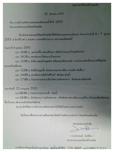 แจ้งกิจกรรมออกรอบชมรมตาปี ครั้งที 4 / 2555 ณ บ้านคีรีวงศ์ อ.ลานสกา จ.นครศรีธรรมราช