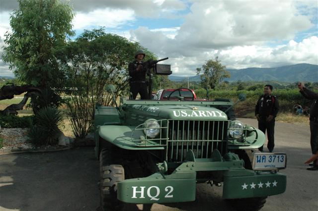 ตำรวจนำขนวนเห็นรถจี๊บทหารแล้วอดใจไม่ไหว กระโดด