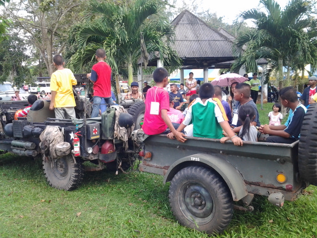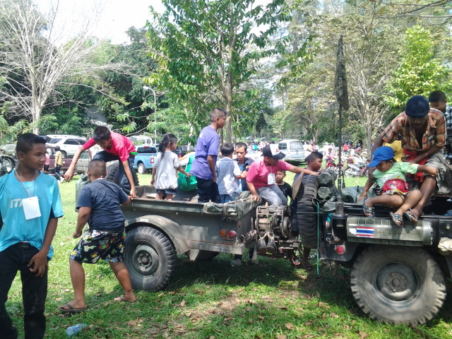 ได้เวลาพาเด็ก ๆ นั่งรถจิ๊ปกันแล้ว. กับลุงแดง ตาปี