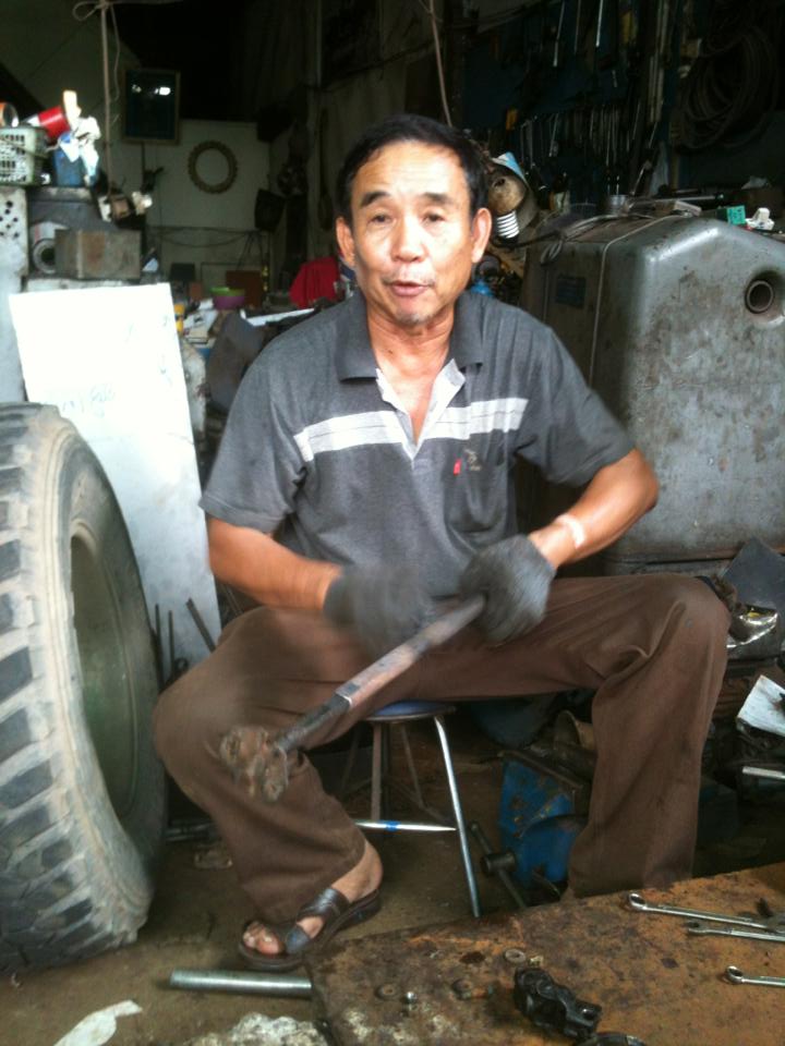 งานเข้า แกนพวงมาลัยไม่ยืดไม่หด เคาะก็แล้วทุบก็นิ่ง ต้องตัดต่อปลายให้ใส่กับเพลาสไปลน์ด้วยสิ