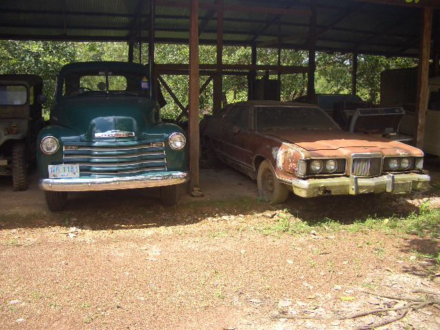 สีเขียวคันนี้ก็ยังวิ่งขนยางอยู่ ส่วน ขวามือเป็นรถฟอร์ด คูก้า เครื่องเดิม วี8สูบเดิมๆ พออธิบายเสร็จ หันมาถามว่ามีใครจะปั้นต่อมั้ย พวกเราส่ายหน้า