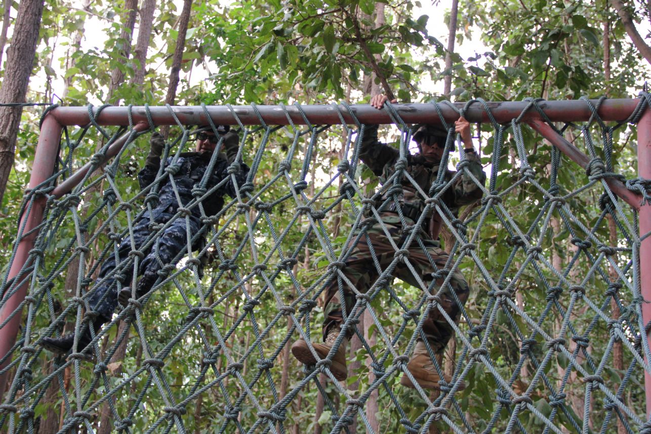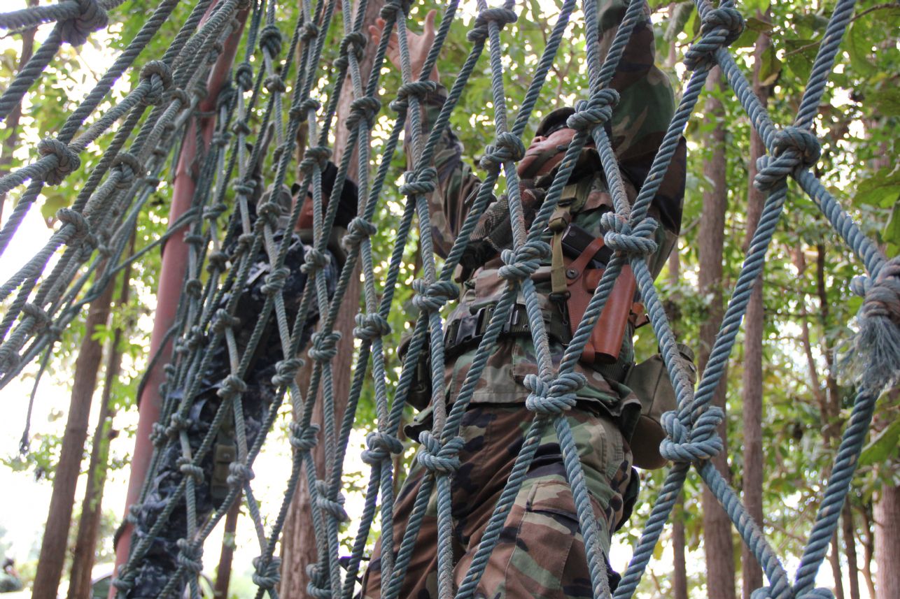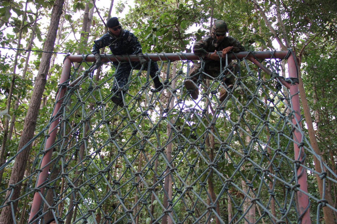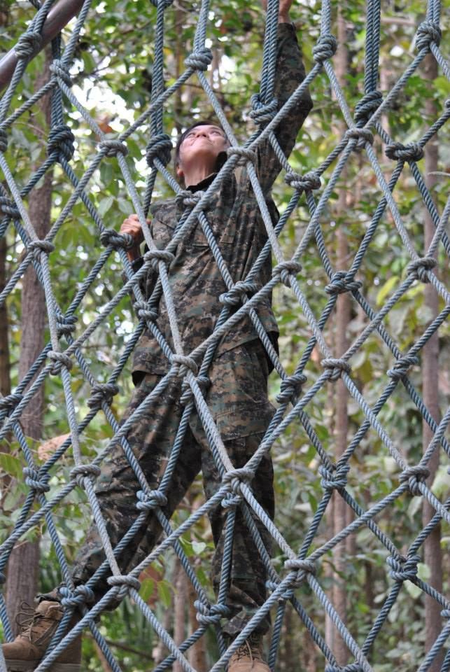 ...การเข้าฝึกในฐานนี้ต้องการให้ผู้เข้าร่วมกิจกรรมได้สัมผัสกับการไต่ตาข่ายทางทหาร ซึ่งเป็นการไต่ขึ้น-ลง จากเรือรบ เพราะเรือรบไม่สามารถจอดใกล้ชิดชายฝั่งได้ ทหารทุกนายจำเป็นต้องไต่ตาข่ายจากเรือรบเพื่อขึ้นเรือลำเลียงยกพลขึ้นบก
