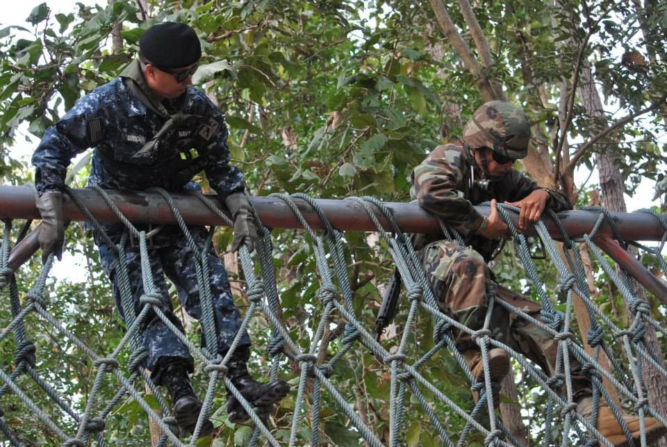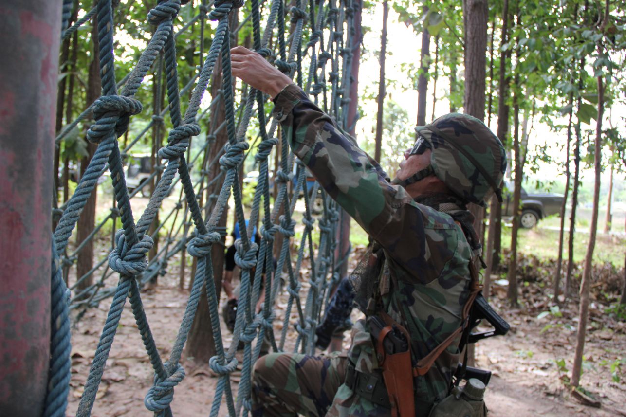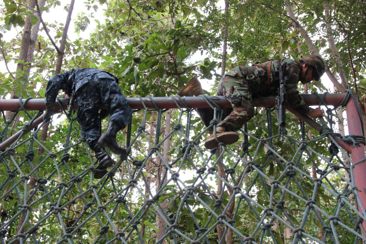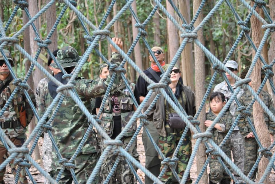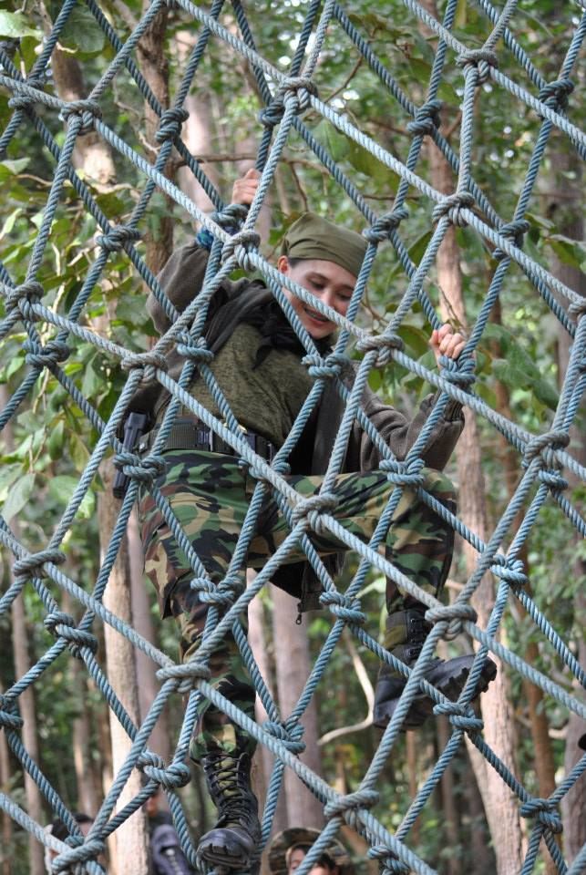 ...การเข้าฝึกในฐานนี้ต้องการให้ผู้เข้าร่วมกิจกรรมได้สัมผัสกับการไต่ตาข่ายทางทหาร ซึ่งเป็นการไต่ขึ้น-ลง จากเรือรบ เพราะเรือรบไม่สามารถจอดใกล้ชิดชายฝั่งได้ ทหารทุกนายจำเป็นต้องไต่ตาข่ายจากเรือรบเพื่อขึ้นเรือลำเลียงยกพลขึ้นบก