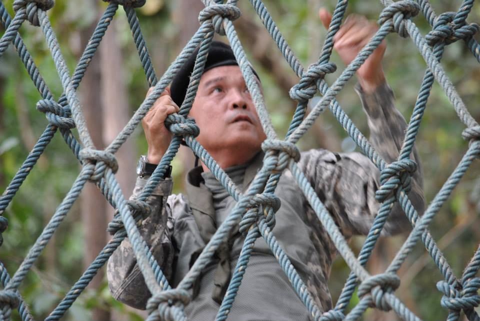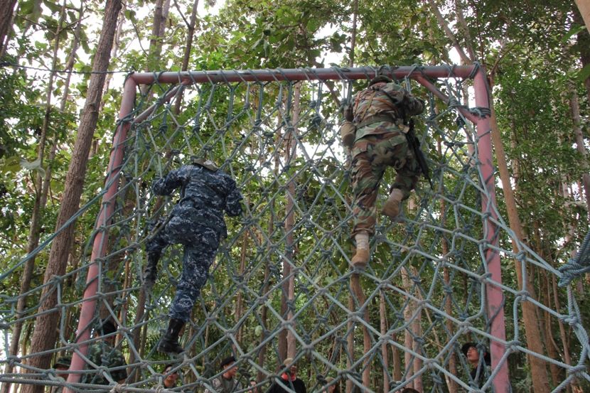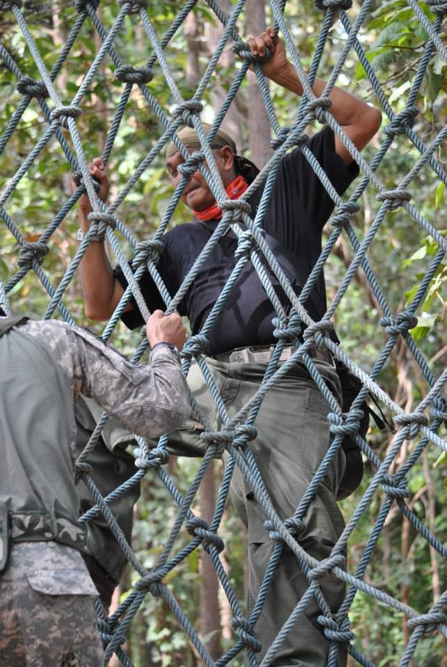 ผมเคยแต่กระโดดร่มและรบในป่า...ไม่เคยไต่ตาข่ายแบบนี้สักทีเพราะไม่ใช่นาวิกโยธิน เห็นแล้ว.งง เป็ด