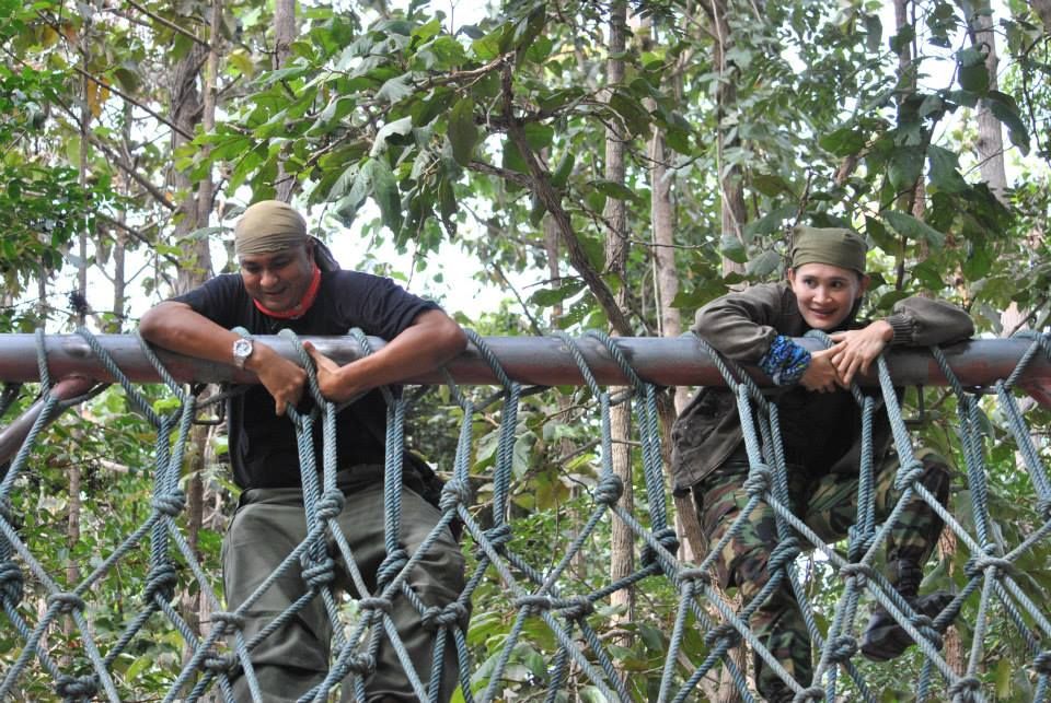 ครูฝึกอธิบายวิธีการไต่ตาข่ายเรียบร้อยแล้ว..ขอเชิญ 2 ท่านแรก เปิดวิกไต่ตาข่ายได้เลยครับ
