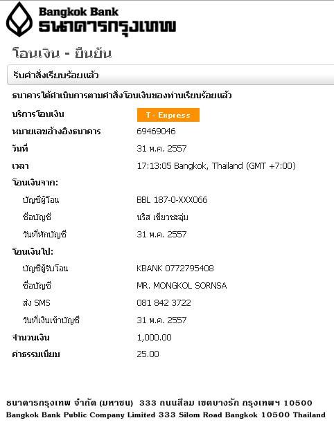 โอนให้แล้วครับ 1,000 บาท