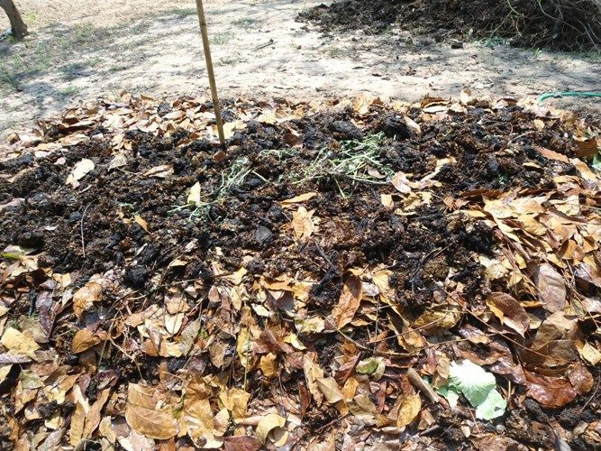 ทดลองทำปุ๋ยหมักแบบไม่กลับกองของ ม.แม่โจ้ โดยใช้ใบไม้ ต้นหญ้า เศษผักจากตลาด+กับมูลสัตว์