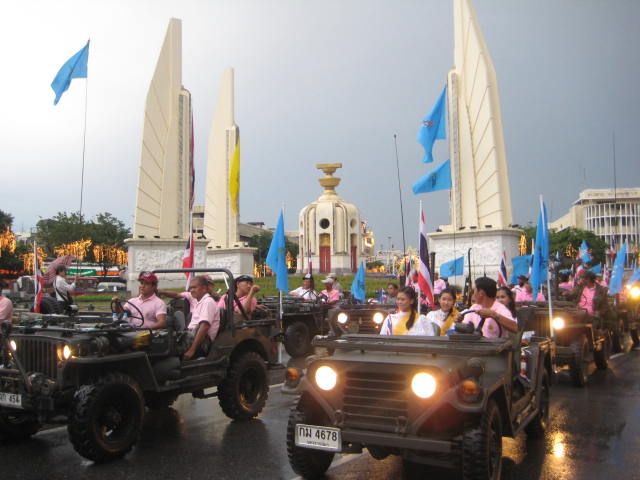 เลี้ยวขวา มาวงเวียน อนุเสาวรีย์ประชาธิปไตย เข้าสู่ลานพิธีท้องสนามหลวง