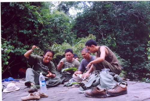 ลหังจากเหน็ดเหนื่อย ก็มากินอาหารกลางวันแบบ ดิบดิน ข้าวห่อใบตอง ท่ามกลาง ธาร ธารา แต่..ไม่ มี วดี นะ