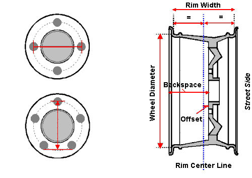 There are several critical measurements to take into account when selecting a wheel or when replacing your stock wheels with aftermarket wheels (wheels and rims being used interchangeably in this article). Among these important measurements are: