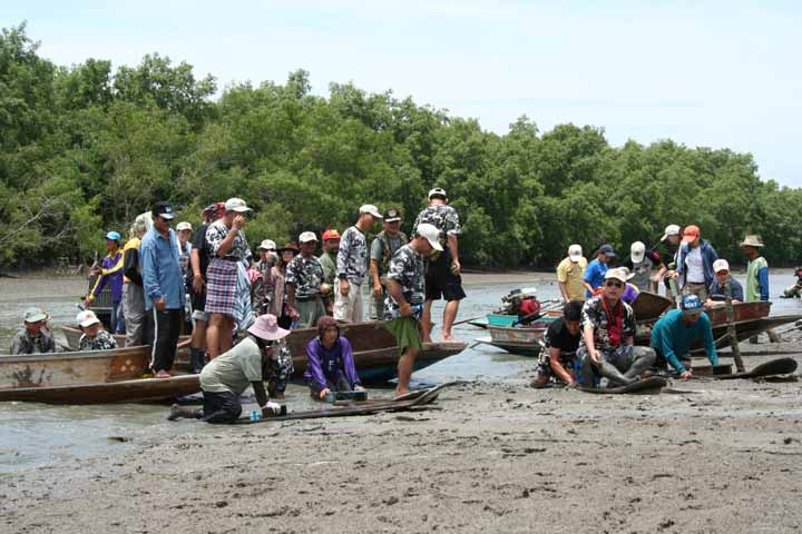 11.00 น. ถึงที่หมาย 1 / 3 ม. 3 ต.คลองโคน อ.เมือง จ.สมุทรสงคราม สมาชิก Jeep เปลี่ยนเสื้อผ้า จัดแถว แบ่งกลุ่ม ลงเรือหางยาว พร้อมลุยโคลน ปลูกป่าชายเลน