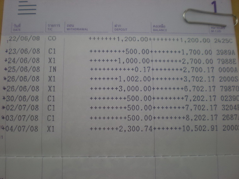 งานนี้ไม่ได้ไปด้วยอีกและ ฝากกะตังค์ไปซื้อไอติมแจกเด็กๆ กะหมอเด็กๆ 1,000 บาท เข้าบัญชีไปแล้ว เมื่อ 030708 T.17.40 จาก Loc.5643 Seq. 2524