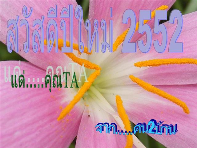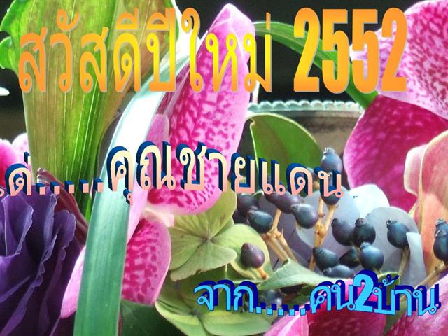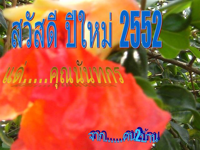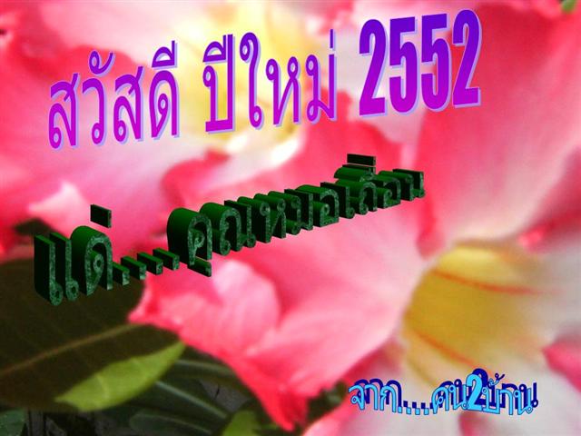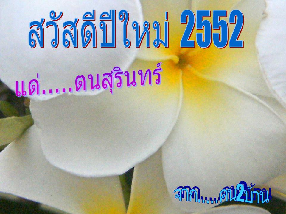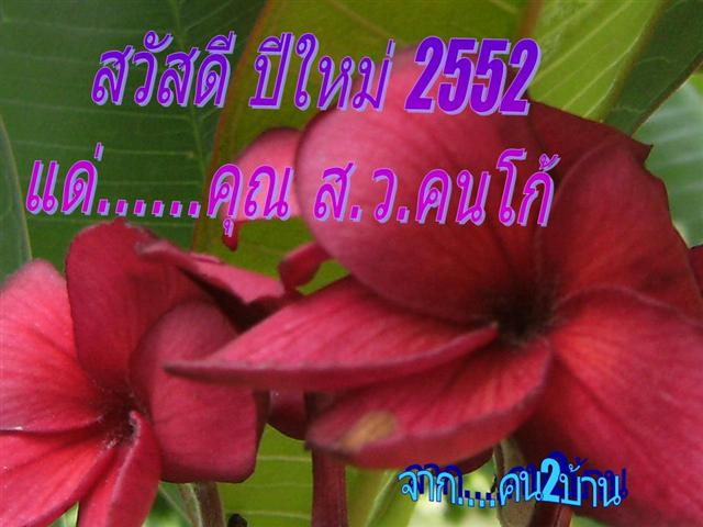 ขอบคุณสำหรับ ส.ค.ส. ฉบับแรกของปี 52 ครับท่านคน 2 บ้าน ขอชื่นชมในน้ำใจชาว TMVC จากใจจริงครับ ขอให้ทุกๆ ท่านมีความสุขทั้งจากตนเอง จากครอบครัวและจากคนรอบข้างในสังคม และผ่านวิกฤตต่างๆ จากภายนอกที่จะต้องประสบให้ผ่านพ้นไปได้ด้วยดีนะครับ สวัสดีปีใหม่ครับ