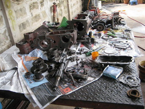 cj6 อาการน่าเป็นห่วงครับพีน้อง (ห้วงเวลาก็ใกล้เข้ามาทุกที) หลังจากวิ่งได้ มีอาการตามมาอีก คือเกียร์มีเสียงดังว่าวๆ น้ำมันเกียร์หยดด้านปลายเกียร์ 3 และปลายเพลาขับทั้งสองด้าน แถมช่วงถอนคันเร่งเกียร์ 3 หลุด เลยตัดสินใจผ่าเกียร์ ยังลุ้นอยู่จะทันการมั้ยนี่///