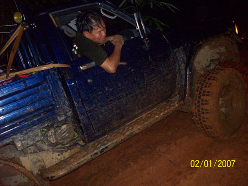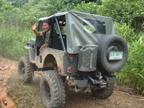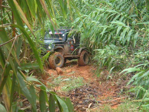 จะเข้าทางหมื่นด่านหรือบ้านม่วงผมไม่แน่ใจต้องถามทางชุดตราดผมว่าทางคนเที่ยวป่าคงรู้ดี ผมเดาว่าคงเป็นทางบ้านม่วงเมื่อก่อนตอนเข้าไปมีแต่ฝุ่นเดี๋ยวนี้เขมรทำทางดีกว่าของไทยอีกคงเตรียมพร้อมทางสงครามและค้าขาย ตอนนี้ทหารเขมรพัฒนาปรับปรุงเรื่องเครื่องแต่งกายและอาวุธใหม่ๆแล้วทั้งเครื่องแบบลายพราง AK 47 ใหม่ๆ คงขู่ขวัญทางไทยหรือเป็นสงครามจิตวิทยาที่ไทยยังกัดกันเองอยู่บางจุด. เข้าออกไม่ไกล้ไม่ไกลมากคงพอหนุกหนานและปลอดภัยเพราะไปกับพวกโตๆและทหาร เขมรไม่กล้าหรอกกลัว่าเราจะขับจิ๊ปหนีไม่ทันฮิๆ.