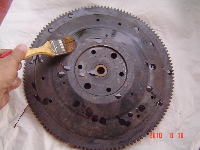 ใช้น้ำมันเครื่องใหม่ หยดลงบนชิ้นงานแบบนี้ แล้วใช้แปรงสะอาดทาให้ทั่ว