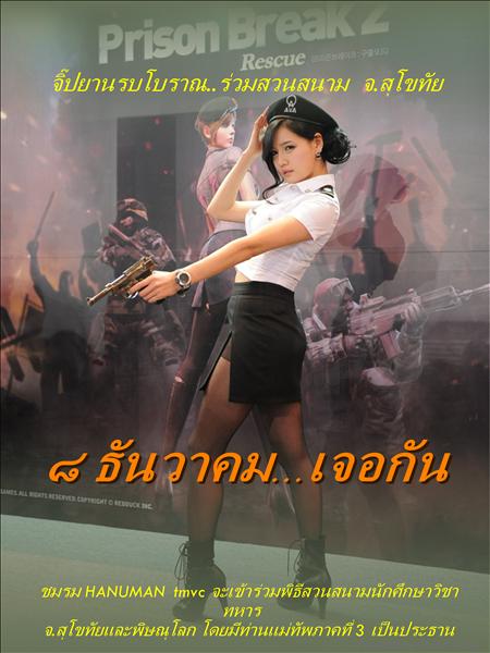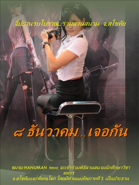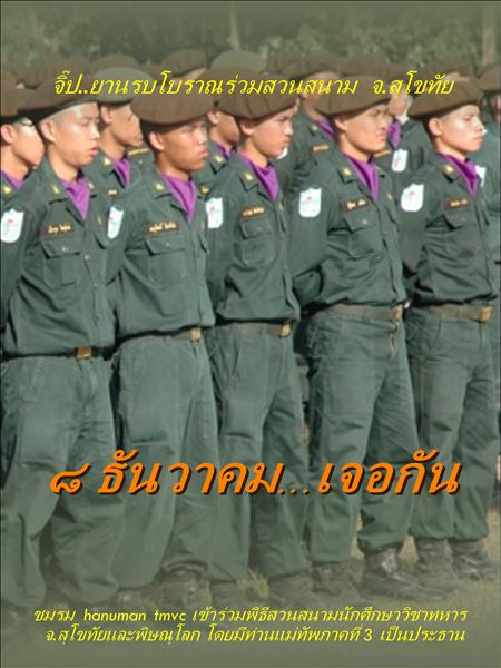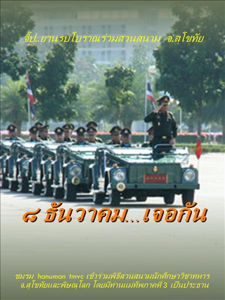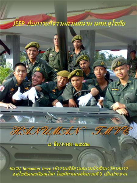 ชมรม HANUMAN tmvc ได้รับการประสานงานจาก อาจารย์ไมตรี สายโกสุม ว่าจังหวัดทหารบกพิษณุโลก จะทำการสวนสนามนักศึกษาวิชาทหาร ที่สนามกอล์ฟ จังหวัดสุโขทัย ในวันอัคารที่ 8 ธันวาคม 2552 เวลา 13.00 น.โดยท่านแม่ทัพภาคที่ 3 เป็นประธานเปิด จึงขอความร่วมมือท่านใดมีรถจิ๊ปที่สามารถเปิดประทุนได้ เข้าร่วมสวนสนาม ในวันเวลาดังกล่าว โดยซ้อมความพร้อมเพียง เวลา 08.00 น.ในวันเดียวกัน สอบถามรายละเอียดได้ที่ หนุมาน 4 โทร 087-8411523