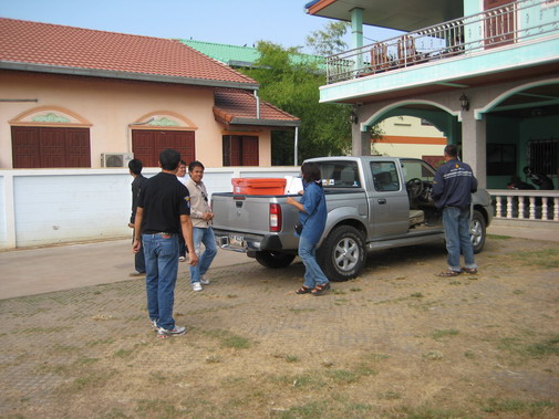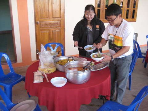 คุณลุงชัยนิดพร้อมวัตถุดิบสำหรับทำขนมจีนเพื่อเลี้ยงเด็กนักเรียน ที่โรงเรียนคลองมดแดง พึ่งมาถึงครับ