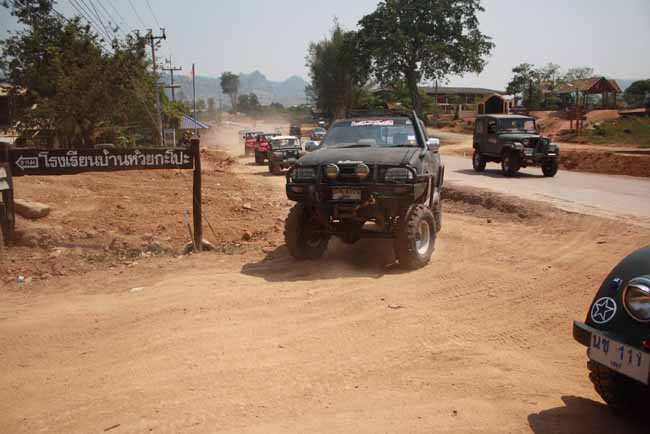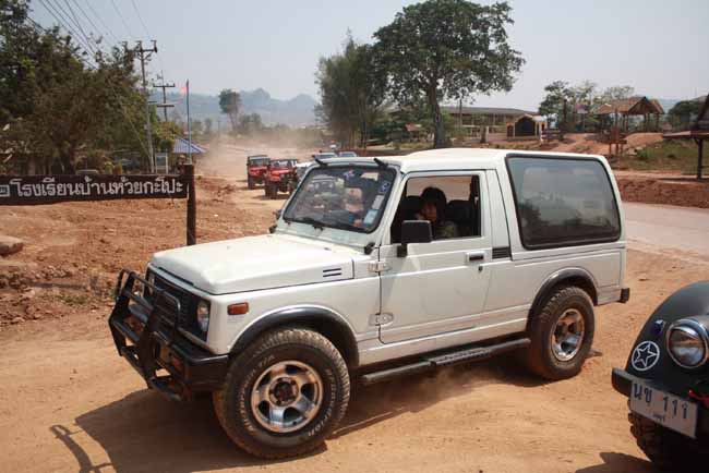 เรารอครูดอย เพื่อที่จะเข้าไปพร้อมกัน ไร้ซึ้งวีแววเลยครับ ..ถามชาวบ้านแถวนั้นว่ามีรถจิ๊ปหน้ากบแถวนี้มีรึป่าวเพื่อจะถามหาครูดอย ชาวบ้านตอบเป็นเสียงเดียวกันเลยว่า ...แถวนี้ไม่มีใครมีรถจิ๊ปหรอกครับ....บ้านท่าม่วงก็ไม่มี ...ระยะทางเข้าบ้านห้วยกะโป๊ะ 9กม จากหมู่บ้านห้วยกะโป๊ะเข้าน้ำตก ประมาณ 12-13กม เราคนคอเดียวกันเลยสงสัยครับ...ครูดอย อยู่แถวนั้นจริงหรือป่าว ตอนผ่านบ้านห้วยกะโป๊ะ เจอครูและชาวบ้าน ยิ้มทักทายพวกเราเลยบอกว่า วันนี้ขอรบกวนหน่อยนะครับ ชาวบ้านและครูบ้านห้วยกะโป๊ะบอกว่า ตามสบายเลยนะครับเต็มทีได้เลย ...ขอขอบพระคุณชาวบ้าน และคุณคณูทุกท่านมา ณ.โอกาศนี้เลยนะครับ