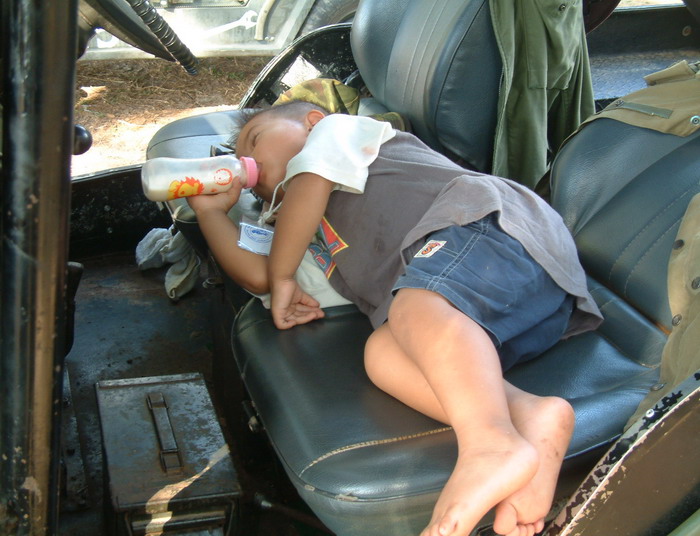 โตขึ้น หนูจะขับจี๊ปของพ่อ แต่ตอนนี้ขอเติมพลังก่อน จ๊วบ...จ๊วบ