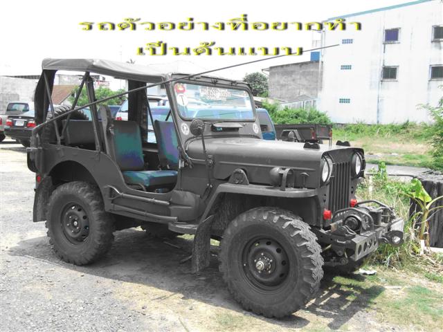 พี่คนชายแดน ผมขอปรึกษาหน่อยครับ คือผมไปซื้อรถจี๊ป รุ่น CJ 6 มา 1 คัน สี ดำ ราคา 75,000 บาท ทะเบียนโอนถูกต้อง เครื่อง TOYOTA BU ประมาณ 3,000 cc. ชนเกียร์จี๊ปมิตซู 4 เกียร์ คานหน้าเดิม เพลาขับด้านยาวอยู่แต่ข้างสั้นไม่มี มีฟรีล็อค คานหลังเป็นโตโยต้า 5 รู สภาพแข็งแรง รับรองไม่ผุ มีใครอยากเปดูแลต่อไหมครับ แม่คนที่ 2 บ่นครับ ขอ e-mail ด้วยครับจะส่งรูปไปให้ดู ลงรูปไม่เป็น