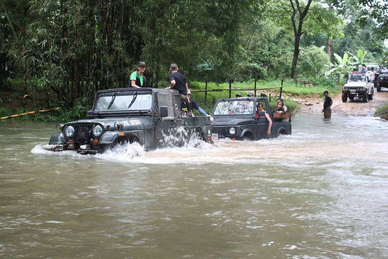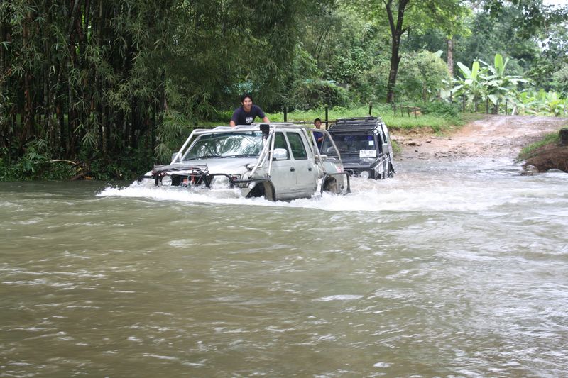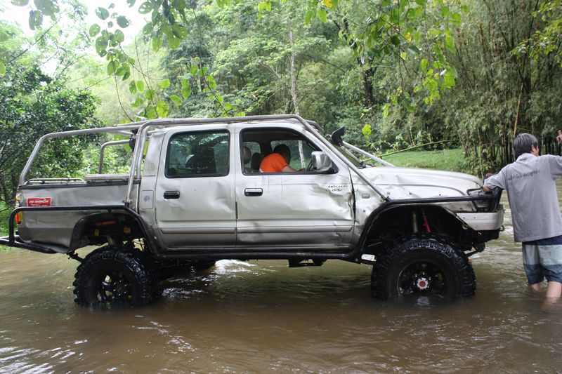 รถลุงR400 แนวหน้าข้ามมาก่อน ดูสภาพรถผ่าน สมรภูมิอ๊อฟโรด มานับจำนวนไม่ได้ คอยเป็นพี่เลี้ยงช่วยรถหลายคัน