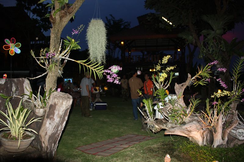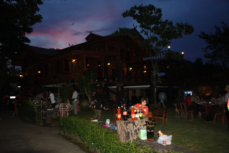 ตกเย็นมาก็มีการพบปะสังสรรค์...รำ ว.4 ทางน้ำแบบเพื่อนๆๆที่รู้ใจกัน ดื่ม..20 "จอก ก็ไม่เมา ท่ามกลางบรรยากาศแบบบ้านไม้ มะค่าแผ่นหน้าเป็นนิ้ว และสวนหย่อม น้ำตก..คอกช้าง..ภาพในบ้านจะโชว์ให้ดูวันหลัง(ถ่ายไว้เมื่อปี และ 2ปีที่แล้ว เผื่อใครเอาเป็นตัวอย่างทำแบบเล็กๆไว้ที่สวน)