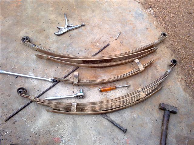 2. ถอดแหนบออกมาล้างทำความสะอาดและตรวจเช็คขนาดและความยาวของแหนบแต่ละแผ่นเปรียบเทียบทั้งซ้ายและขวา