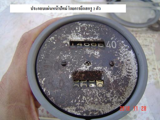 ใส่ชุด odometer ลงบน mainframe โดยให้ปลายแกนodometerสวมลงบนรูmain frame พอดีและใช้มือหมุนที่ตูดเรือนไมล์ถ้าลง frame จะสนิทพอดี ส่วนปลายด้านบนให้ตรงกับรูที่แผ่น odometer frame